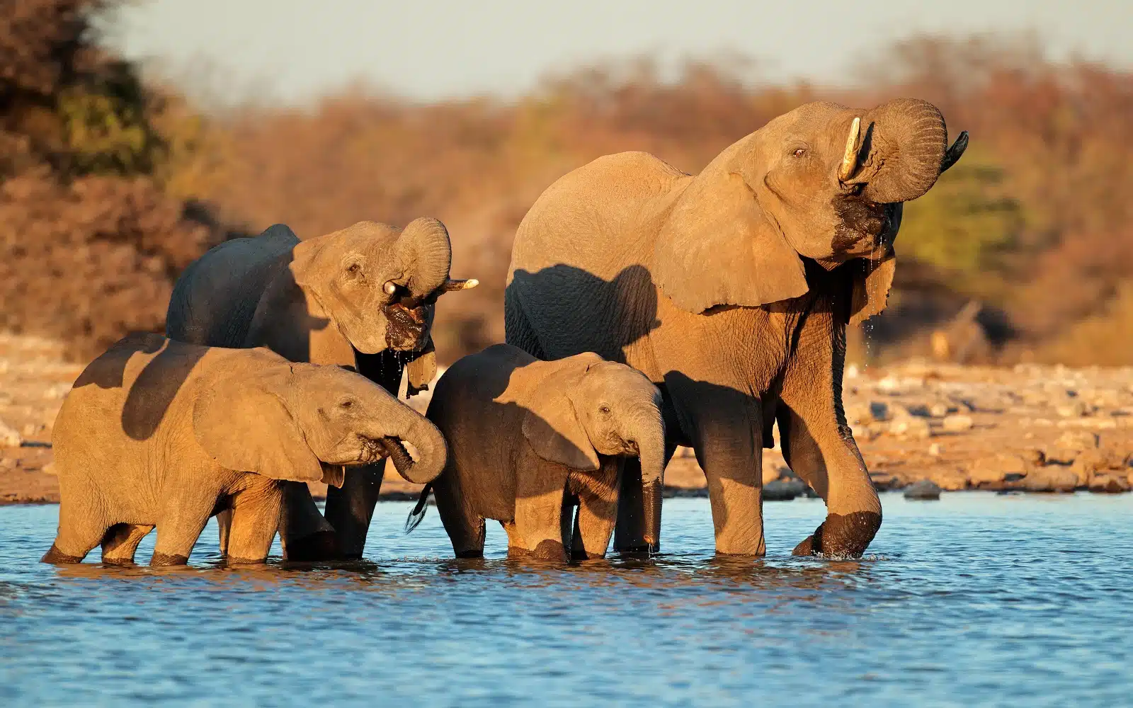 Cette journée vous entraînera au cœur du parc national d’Etosha. Vous traverserez le parc d’Ouest en Est (130 km) en autocar, admirant de près des éléphants, des gnous et d’autres animaux sauvages. L’immense pan d’Etosha se trouve au cœur du parc : cette plaine large et blanche est peuplée de nombreux animaux. Vous y vivrez un safari inoubliable !