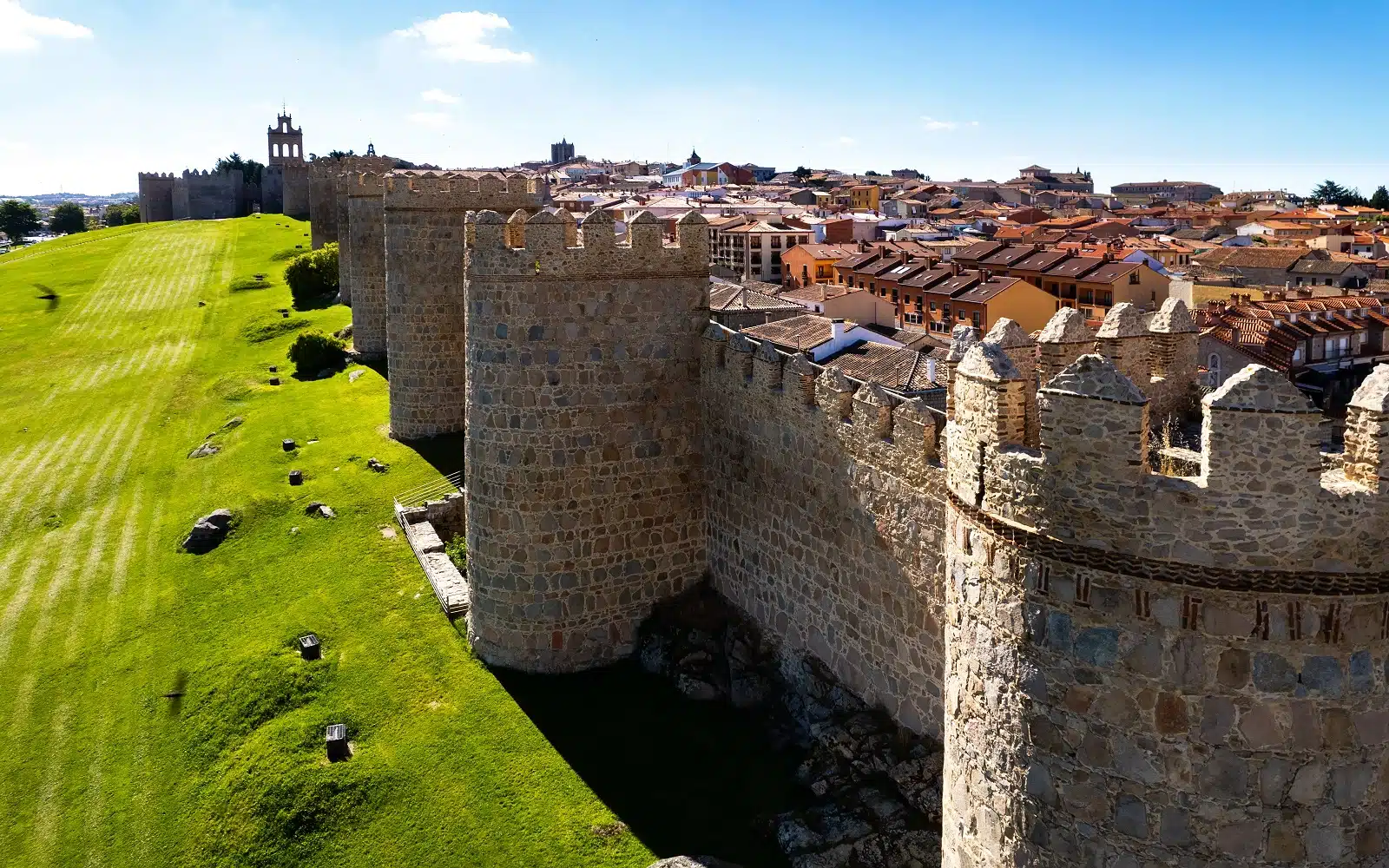 Votre voyage en train se poursuit. La première escale du jour, Ávila, est le quatrième site classé par l’UNESCO sur votre parcours. Sa muraille médiévale du XIe siècle est la mieux préservée du monde, s’étendant sur plus de 2 500 m avec 9 portes et 88 tours. La ville possède également une impressionnante cathédrale gothique et de nombreux monuments d’époque romane.