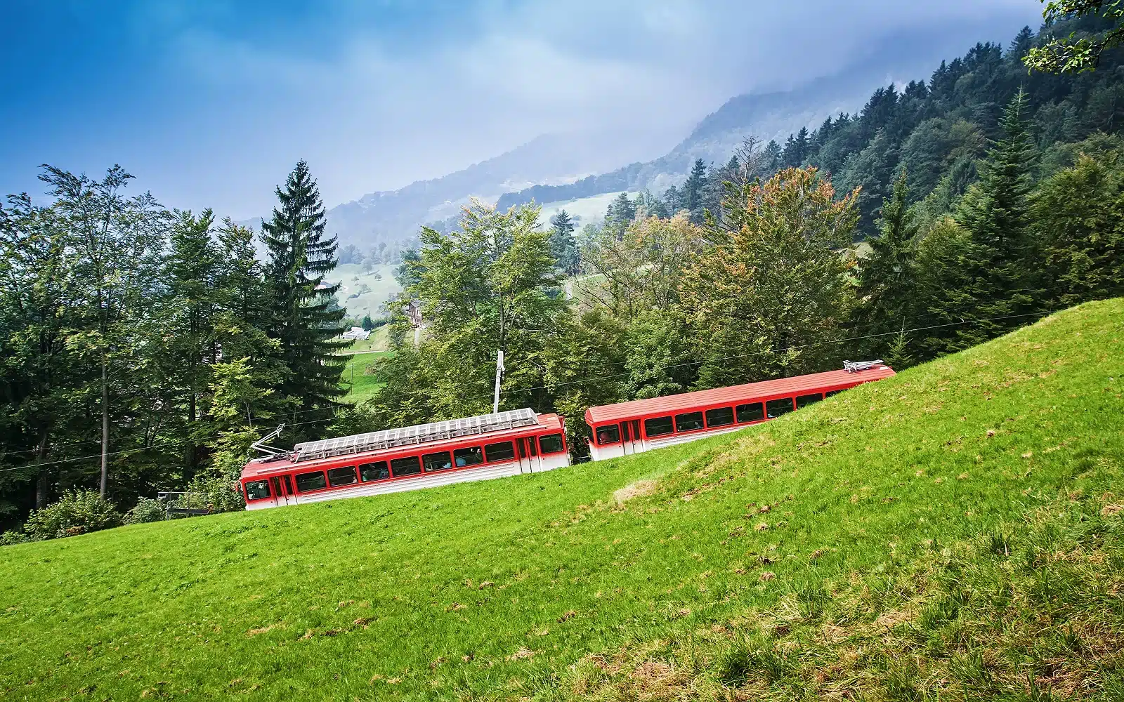 Commencez votre première journée en altitude. À l’heure de votre choix, gagnez la gare de Lucerne pour un court trajet en train régulier (27 min) jusqu’à Arth – Goldau. De là, un train à crémaillère vous mène au sommet du Mont Rigi (1 798 m), offrant une vue panoramique sur plus de 13 lacs. Empruntez une petite randonnée en descente depuis le « Rigi Kulm » et faites étape à la ferme et fromagerie « Alp Chäserenholz ». Continuez jusqu’à Rigi Kaltbad. Descendez ensuite par la première ligne de train à crémaillère du monde jusqu’à Vitznau. Terminez la journée par une croisière panoramique sur le Lac des Quatre Cantons jusqu’à Lucerne.
