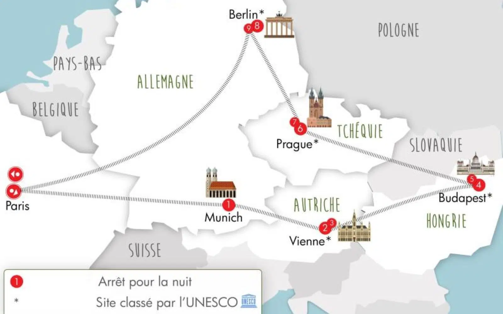 La capitale allemande, jadis coupée en deux par le célèbre Mur, est marquée par l’histoire récente de la guerre mondiale et de la guerre froide. Mais c’est aussi ville de pouvoir où l’Art contemporain tient une place centrale. Bouillonnante et animée dans ses artères centrales comme la Friedrich Strasse ou la célèbre avenue Kürfurstendamn, elle est aussi placée sous le signe du calme et de la verdure grâce à ses grands espaces, parcs, lacs et forêts qui en font la grande ville la plus verte du pays. Créative et décontractée, Berlin clôture idéalement ce tour d’Europe Centrale.